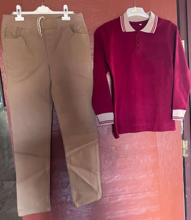 2025-2026 Eğitim-Öğretim Yılından itibaren yeni seçilmiş olan okul kıyafetinin Camel renkli pantolon(Ribanalı, lastikli kompakt kumaşlı ve düz paçalı olacak şekilde),bordo renkli kısa kol polo yaka tshirt ve bordo polo kazak(kışlık) olacak şekilde karar verilmiştir. Yeni belirlenmiş okul üniformaları aşağıdaki şekilde belirlenmiştir.